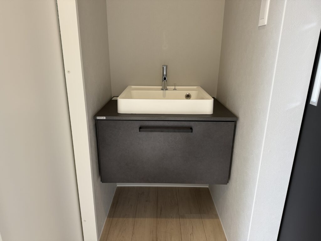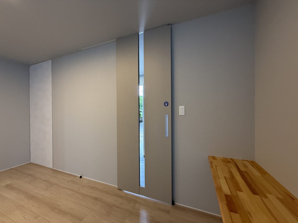 お施主様のセレクトにより内外ともグレーカラーの仕上材を多く使用しました。素材や模様、濃淡によって様々なグレーが組み合わさることで奥行きがありながらも、シックで落ち着いた空間になりました。